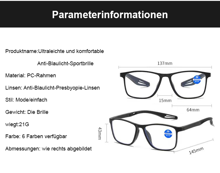 ✨Extrem leichte Blaulicht-Gleitsichtbrille, filtert 99% der schädlichen Strahlen, verstellbar von 0-1000 Dioptrien