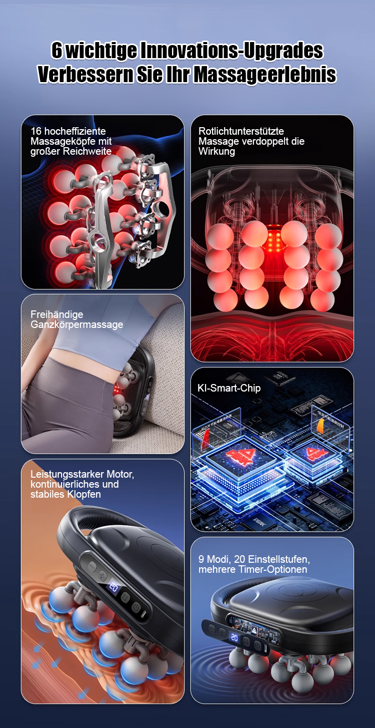 ✅16-Kopf-Tiefenmassage + Rotlichtunterstützung, dringt tief in die Muskeln ein, schnelle Linderung von Schmerzen und Beschwerden⚡️25mm Tiefendurchdringungsdesign, präzise Stimulation der Faszien, von leichter Entspannung bis zur intensiven Beruhigung